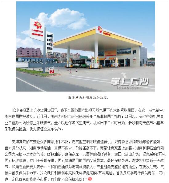 近幾日,湖南部分市州已迅速采取“壓非保民”措施,停止了眾多商家及出租車的燃氣供應(yīng)。突如其來的氣荒讓大家措手不及。為了確保市場供油穩(wěn)定,讓星城人民溫暖過冬,順暢出行,和順石油積極應(yīng)對,從山東緊急采購2萬噸國VI標準柴油,專門用于市場保供,切實履行企業(yè)社會責任,同時以優(yōu)惠價格供應(yīng)市場,絕不借機漲價。